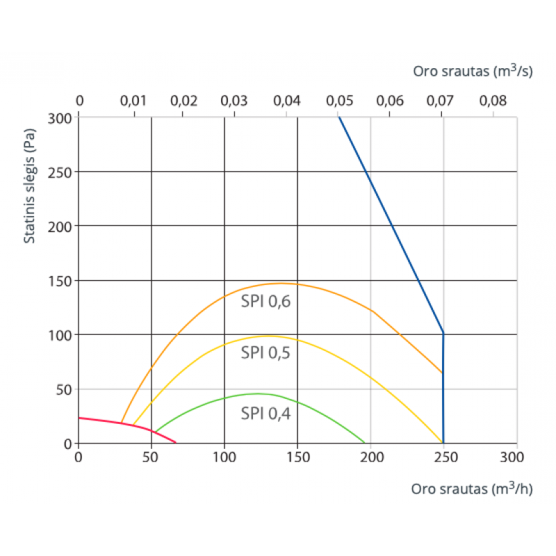 • Maksimalus oro srautas – 250 m3/h.